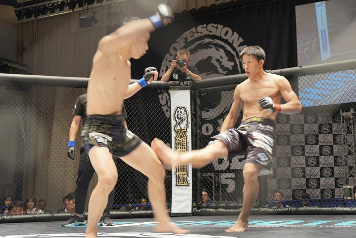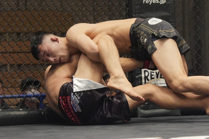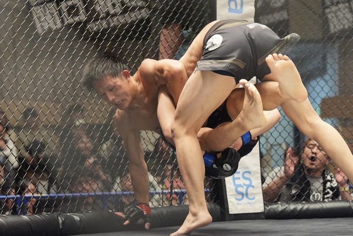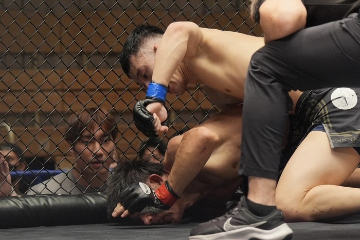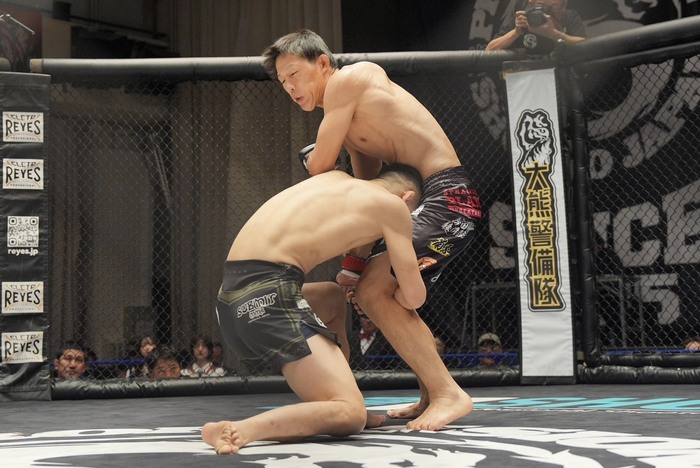 今度は藤田がケージを背負って座り込んだ体勢に。反転して上になろうとする藤田をケージに押し込む一條。タックルをこらえてヒジを入れる藤田。一條の腕にアームロックを狙う藤田だが、一條がバックに回る。リアネイキドチョークを狙うが、両足のフックがかからず前に落ちた一條。逆にバックに回った藤田がバックから頭部にパウンドを連打する。タイムアップ。