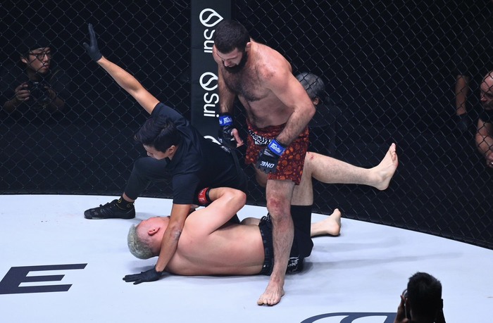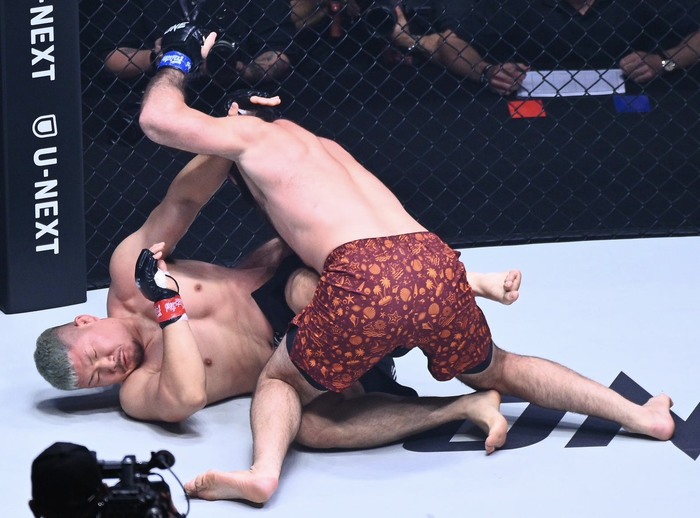 1R、エルドアンがテイクダウンを奪うとバック、マウントからパウンドとヒジ。。竹内は抜け出そうと動くが、エルドアンは竹内の片手を持ったまま鉄槌を連打。一方的な展開となり、レフェリーがストップをかけた。