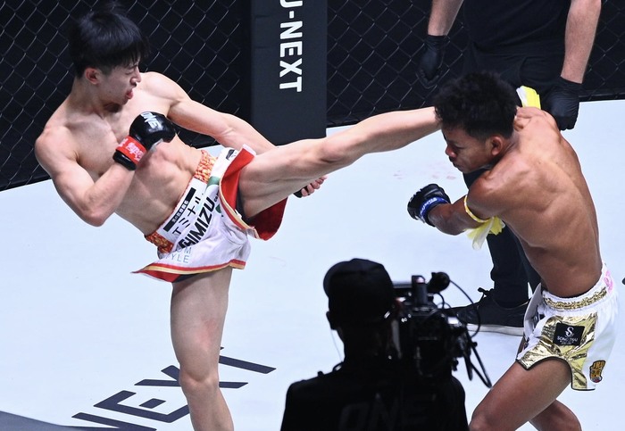 5Rも名高が攻撃を当てて離れる、ヌンスリンが追ってくるところに左ストレートなどで迎撃する戦い方を続ける。ヌンスリンは追ってはいるが、攻撃がほぼ当たらない。名高は左ハイ、左ボディストレート、右フック。ジャブから上中下に蹴り分ける蹴りの4連打。前蹴りからの左ボディを突き刺すとヌンスリンは身体を丸めた。名高が攻勢に出たところで試合終了。