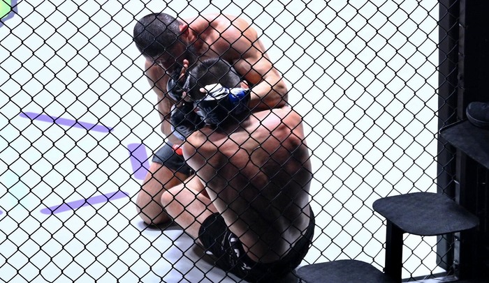 1R、ラスロフがファーストアタックでシングルレッグのテイクダウン。リーの両足を束ねる。ケージを背にして座り込む形となったリーはパンチ、ヒジ。立ち上がろうとしたが再び両足を束ねられる。立ち上がるリーにラスロフはヒザを突き上げるが、リーが離れた。