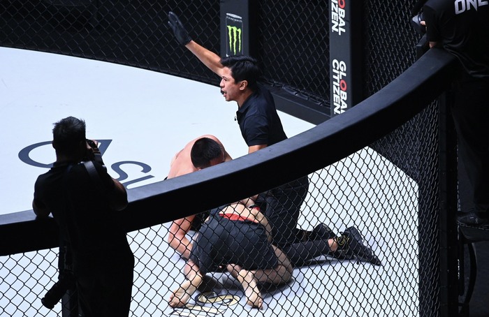 リーはアナコンダチョークに捕らえるとそのままグラウンドへ。チョークの体勢のまま頭部へヒザを連打し、レフェリーがストップ。リーのTKO勝ちとなった。