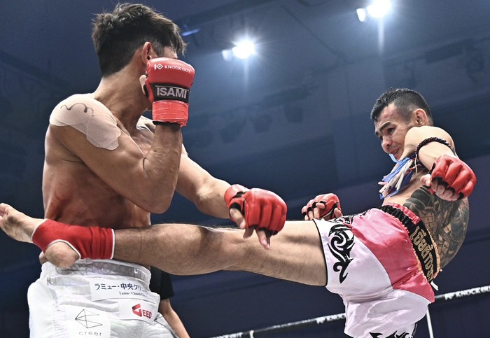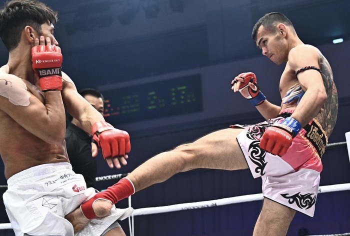 1R、前後にステップを踏む大沢にサウスポーから左ミドルを蹴るゲーオガンワーン。大沢はスイッチも使う。大沢がジャブから右ロー、ゲーオガンワーンは右ストレートから首相撲、ヒザ蹴りを一発。ブレイクになると大沢は左フックを打つが、ゲーオガンワーンは首相撲。大沢は宣言通り組み付いてブレイクを待つ。