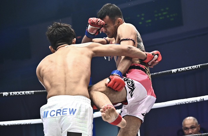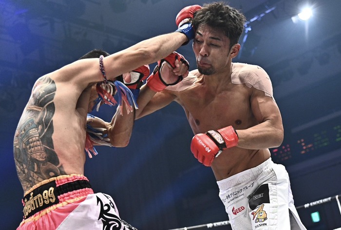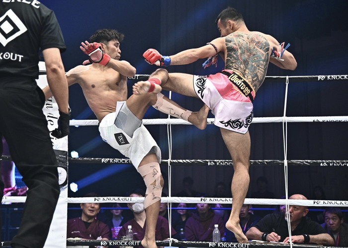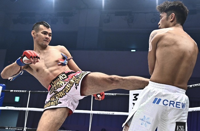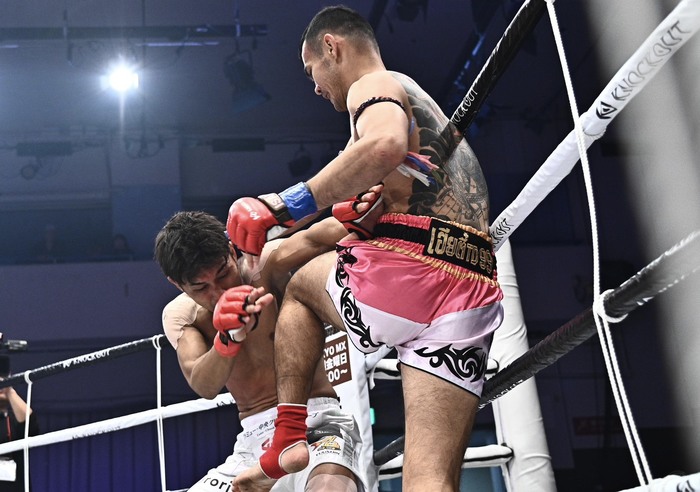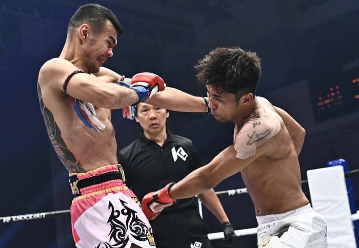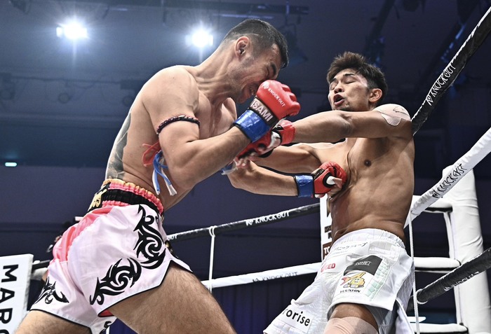 3R、ゲーオガンワーンは左ミドルを蹴ると前に出ていく。そこへ大沢が左ボディ。接近するゲーオガンワーンに左右ボディを打ち込み、ヒジも打つ。ゲーオガンワーンは左ミドル、前蹴り。飛び込みのパンチを多用する大沢だが、クリーンヒットがなかなか奪えない。大きな右フックで勝負をかける大沢に、ゲーオガンワーンは下がらず首相撲に持ち込む。