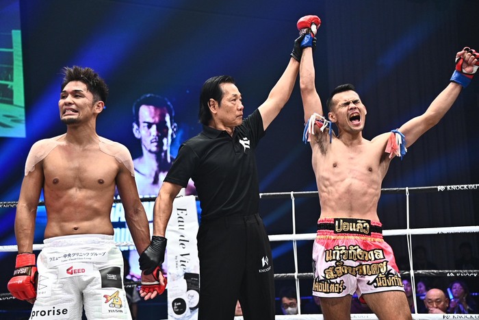 ゲーオガンワーンは「2回目の来日で勝利することが出来て嬉しいです。勝利をタイへ持って帰れることに感激しています。誰と戦っても大丈夫です。僕はKNOCK OUTで王者になることを目標にしています。今後も全力で試合に挑んでいきたいと思います。生まれて3カ月の息子がいるんですが、息子も日本に来れるように試合に勝って頑張っていきます」と勝利者インタビューに答えた。