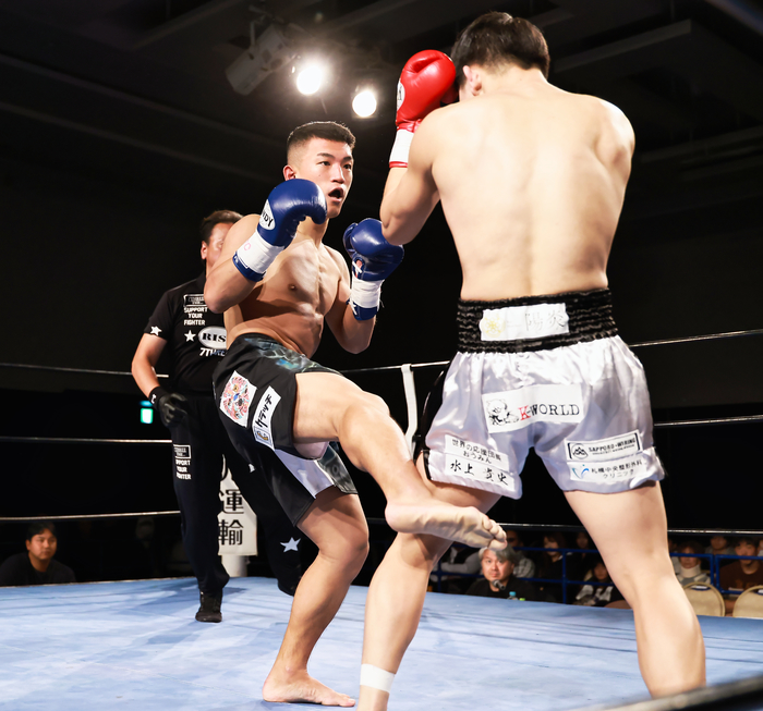 1Rからお互いにアグレッシブにせめぎ合ったが、2Rに矢吹の右ローに新井が右ストレートのカウンターでダウンを奪取。3Rもお互い激しく打ち合ったがダウンの差で新井の勝利となった。