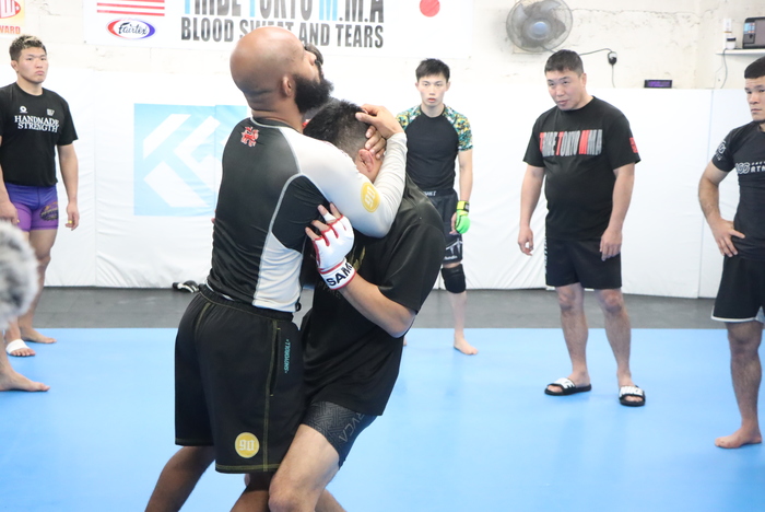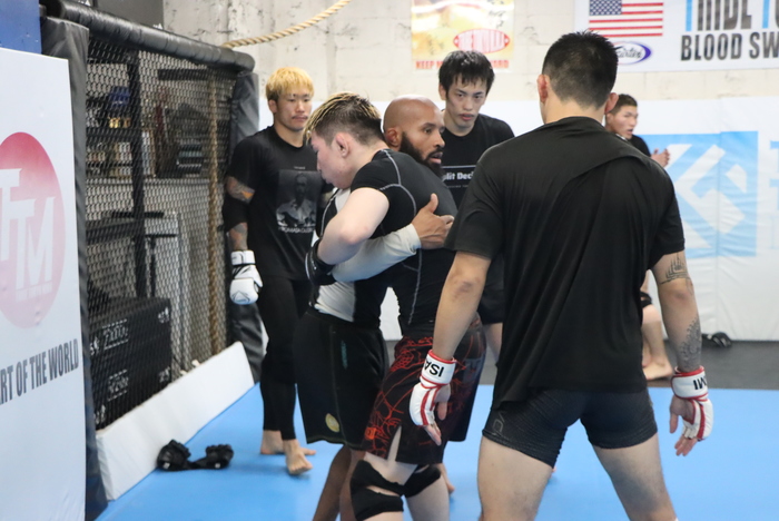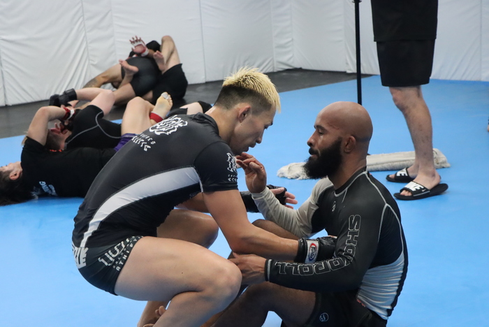「良かったと思う。ボディロックがすごく上手い。足払いも上手かった。レッグロックにもすごく精通している。何をすべきか分かっているんだ。打撃を恐れていないし。どれだけ……って驚いたんだけど(笑)、亮(長南)が俺たちにやらせようとしていたドリル、テイクダウンしてから、押さえ込んだり、立ち上がったり──あれも、ハイレベルだよ。それに、このジムの若松佑弥とは前に戦ったことがある。彼はとても強い。たくさんの人をノックアウトしているし。アドリアーノもノックアウトした。彼はONE Championshipのワールドチャンピオンだ。和田竜光もいるだろ、彼はONE Championshipでとても長く戦っている。亮は最高レベルで戦ってきただろ。だから、みんなが上手いことに驚きはなかったよ」
