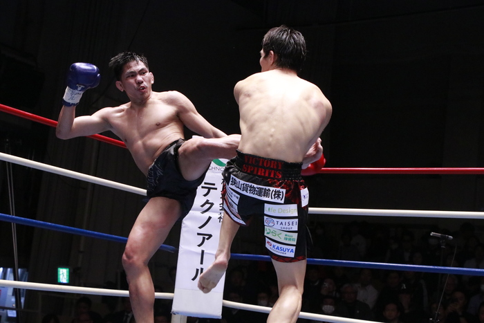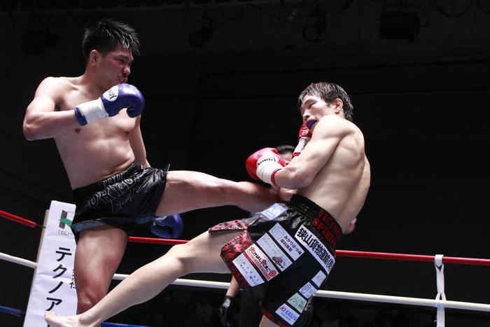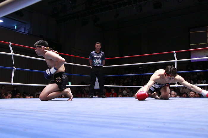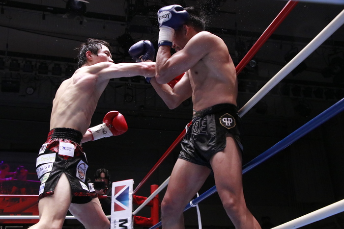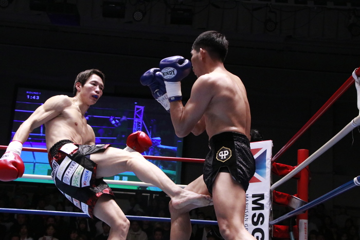 1R、睦雅は左ロー、左カーフ、右インカーフを徹底して蹴る。ペッダムは左ミドル。パンチを連打しながら前に出てきたペッダムに睦雅がカウンターを見舞うと、ペッダムは急にスイッチが入ったか足を止めての打ち合いを挑む。ロープを背にした睦雅へ左右フックとヒジ、睦雅も打ち合ったが無理はせず冷静に離れ、ペッダムのボディを攻めていった。オープンスコアは10-10×3。