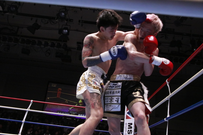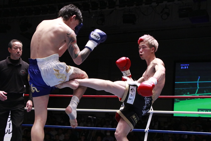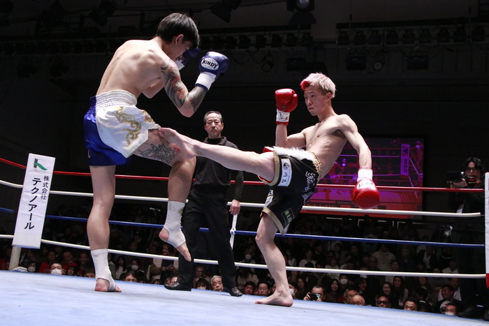 1R、両者サウスポー。西原は強い左ローを何発も命中させ、ジャブやワンツーからつなぐ。ジャブも強い。両者にとって危険な右フックが2度交差する場面もあった。