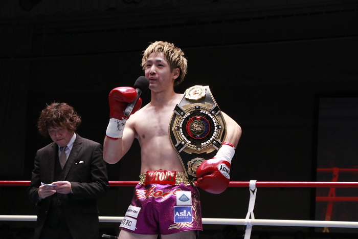 細田はマイクを持つと「9月に応援してくださるおかげでベルトを獲ることが出来ました。今日も凱旋試合で勝つことが出来て、ベルトを持ってくることが出来て嬉しく思います。僕はまだまだこんなもんじゃないので、これから楽しみにしてください」と語った。