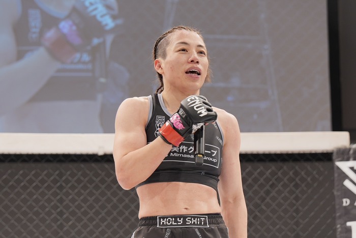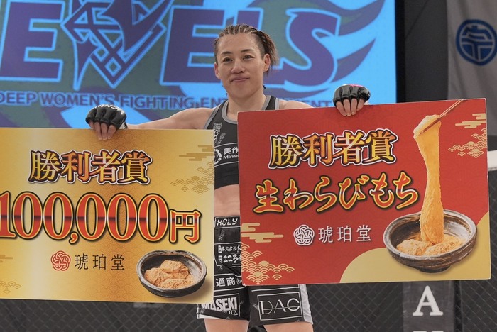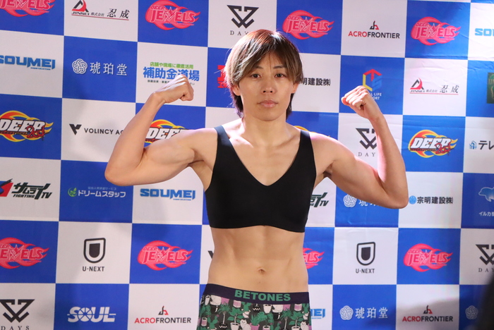 イェジ「1年前に初めてDEEPで試合した時は、オープニング試合だったんですけど、今メインで浜崎さんと試合できて光栄です。メインイベントになってすごく嬉しいです。いい試合を見せられるように頑張ります」