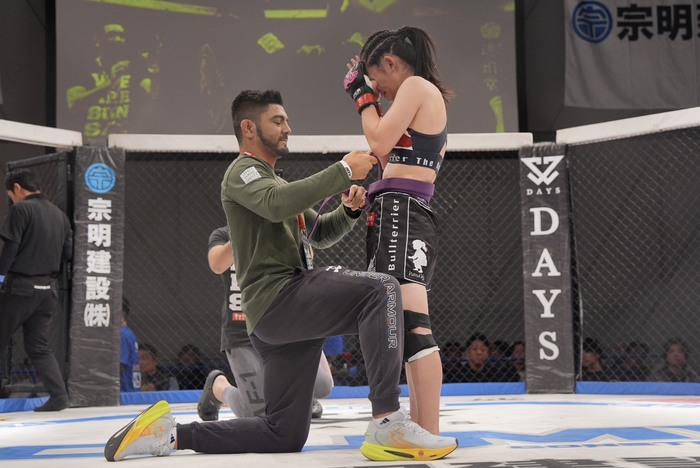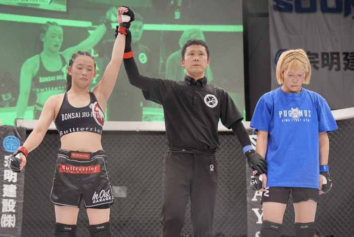 判定3-0(20-18×3)で渡邉が勝利、ホベルト・サトシ・ソウザがケージの中で紫帯を巻いた。