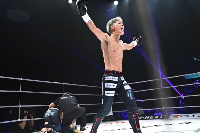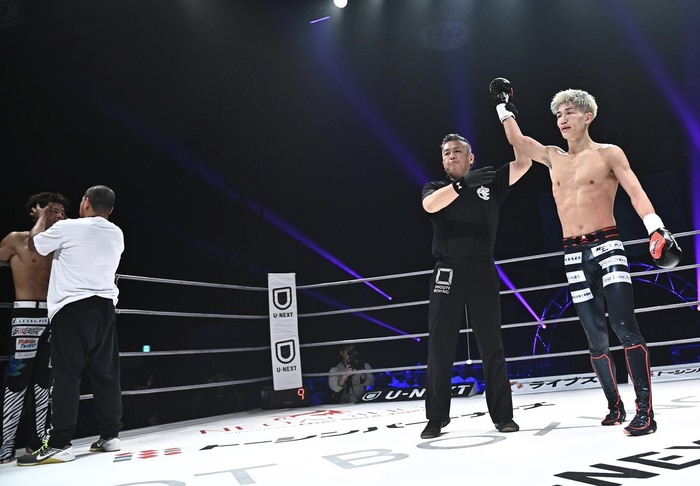 立ち上がると安本が左フックでグラつかせ、距離を詰めての左フックで2度目のダウンを奪いKO勝ちを飾った。
