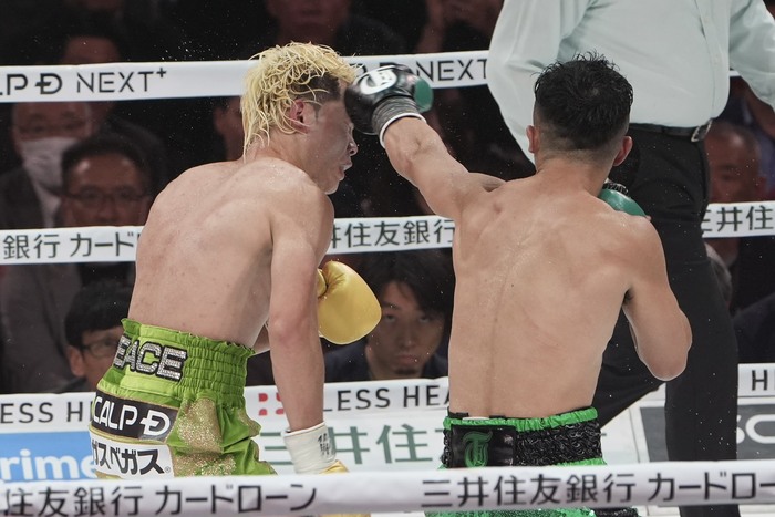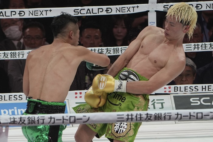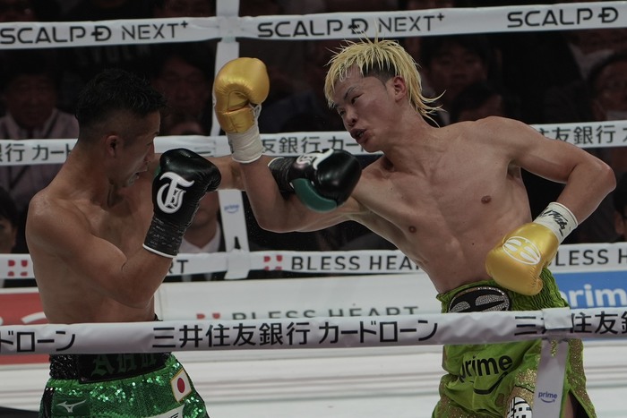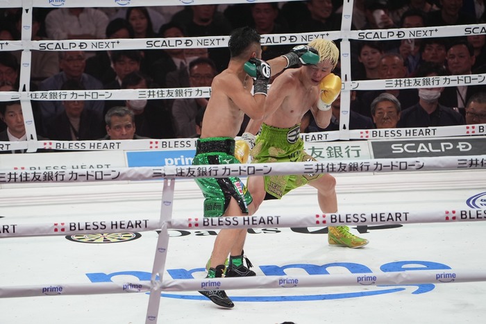 ボクシングデビュー8戦目での世界王座挑戦の那須川は、序盤は持ち前のスピードとステップでオーバーハンドをヒットさせるなど左の攻撃で先制。さらにショートの右フックをヒット。しかし、3R以降、那須川のスピードに慣れた井上が、接近戦を挑み、右ストレートをヒット。4回を終えて公開ジャッジは3者ともに38-38のイーブンに。