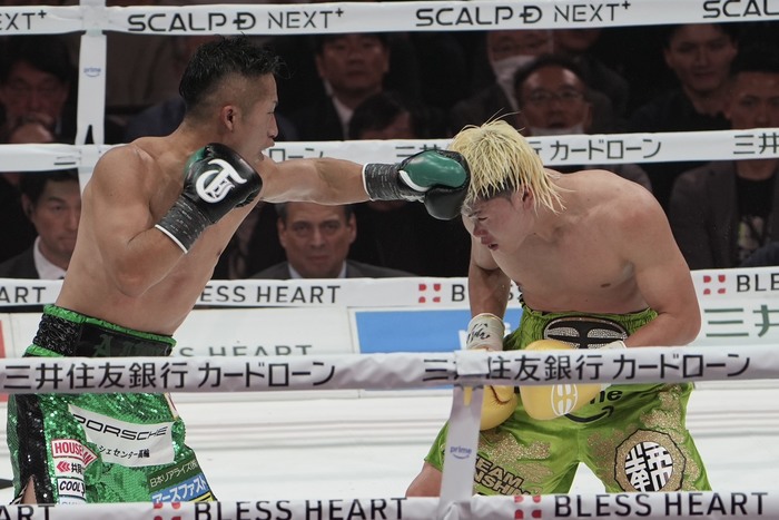 判定3-0(112-116×2、111-117)で井上が勝利。キックボクシング、MMA含め格闘技公式戦53勝無敗だった那須川は初黒星。井上は金色の特製WBCサムライベルトと通常のWBC世界王座ベルトの2本を獲得した。