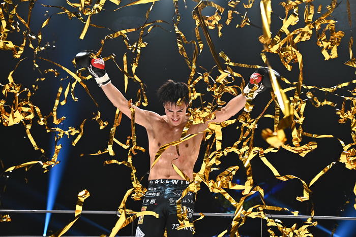 試合後インタビューでは、ONEで勝負したいということかとの質問に「本格的にそこに身を置いて戦っていきたいと思ってます。シュートボクシングとこれからの話はこの後またするとは思うんですけど、SB自体も本当に僕以外に強い選手もいてるし、僕を超えていける選手もたくさんいるので、その中で僕がずっとエースにいてるわけにもいかないと思いますし、笠原兄弟もそうやし、山田ツインズもそうやし、本当に強い子たちがたくさんいるので、その子たちの次の時代につないでいきたいっていう意味で今回の試合もさせてもらったし、40周年っていうこのタイミングで自分が一つ身を引いて、自分が本格的に目指していきたいところにしっかり身を置いて戦っていきたいという気持ちです」と説明。
