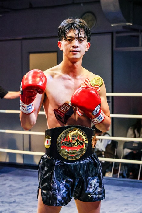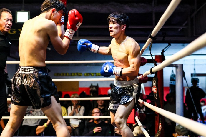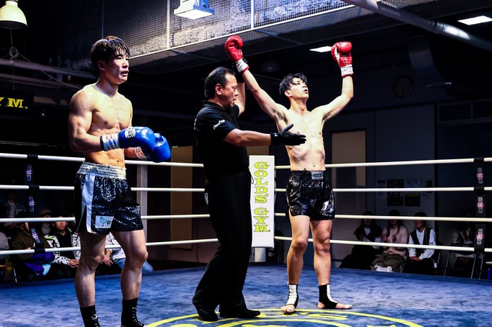3R、前に出る齋藤に、小野寺がテンカオで前進を止め左右フック。お互いに近距離での打ち合いになり、判定へ。小野寺が判定勝ちでベルトを巻いた。