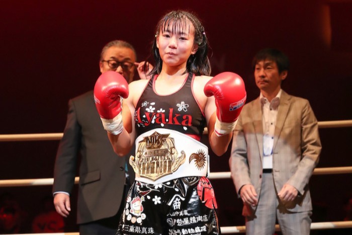 Ayakaは一時期リングから遠ざかる時期もあり、昨年6月にDEEP☆KICKで1年半ぶりの復帰戦を飾ると当時無敗を誇った夢空(Croire)に判定勝利。そして今年6月「ROAD TO LEGEND in 伊勢」に妹たちであるMarina(健心塾)・Honoka(健心塾)と3姉妹揃っての出場を果たし、自身初の世界戦を韓国I.K.M.F女子-53kg級王者であるチャ・ミンジュ(ソルボンジム)と対戦し判定勝利、WBKF世界女子ライトフライ級のベルト戴冠を達成した。
