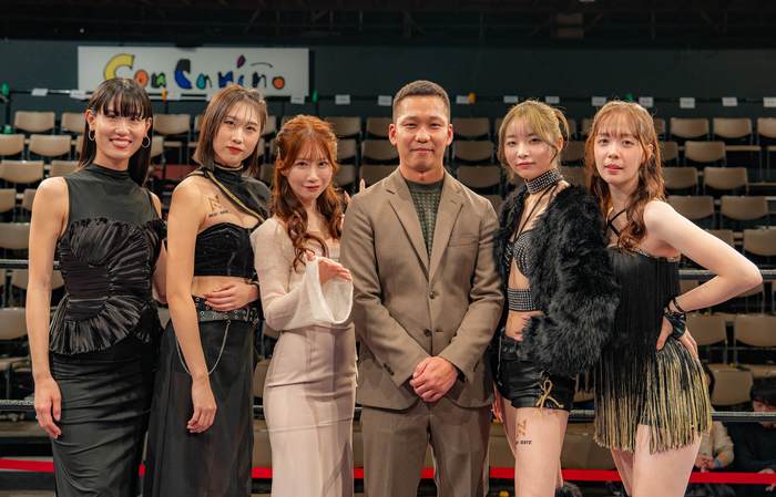 プロマッチの前に、ガールズグループambitiousのライブパフォーマンスが披露され、会場は熱気に包まれた