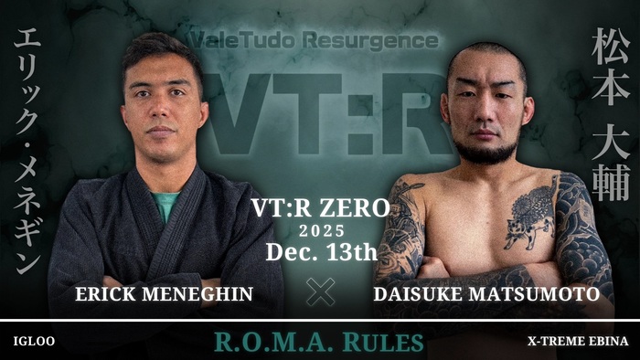 2025年12月13日(土)15時から都内某所にて無観客(U-NEXT配信)大会『VT:R ZERO─Vale Tudo Resurgence ZERO』が開催される。