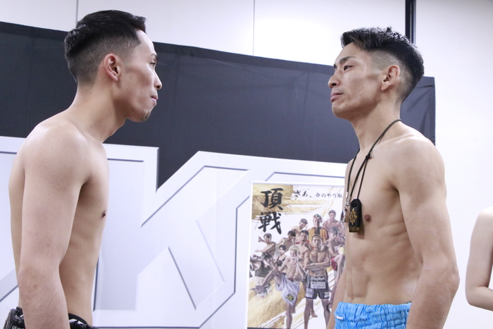 計量後のフェイスオフでは、第8試合の「NJKFバンタム級タイトルマッチ」3分5Rで対戦する、王者・嵐 (キングジム)が挑戦者・同級3位の山川敏弘(京都野口ジム)に中指を突き出して挑発。その後もにらみ続けるなど挑発したが、山川は最後まで無視した。