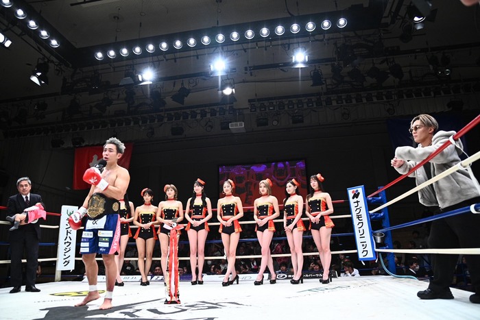 判定は3-0で大岩が勝利、初防衛に成功した。篠原はがっくりと肩を落とした。するとさっそく児玉兼慎がリングインし、大岩を挑発したがすぐにリングを降りていった。