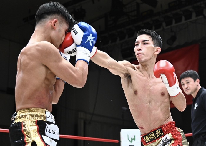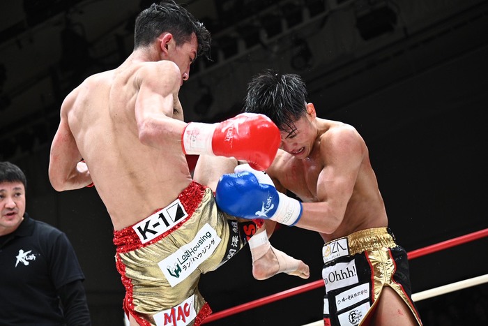 ジャブを突いていく璃明武に村田は左ミドル。互いにジャブを突いてローを蹴るが、両者ともローブローが続く。璃明武の左ミドルに村田は左ボディ。璃明武から左ハイ、ヒザで前に出る璃明武だが、村田は左右フック&ボディで押し戻す。