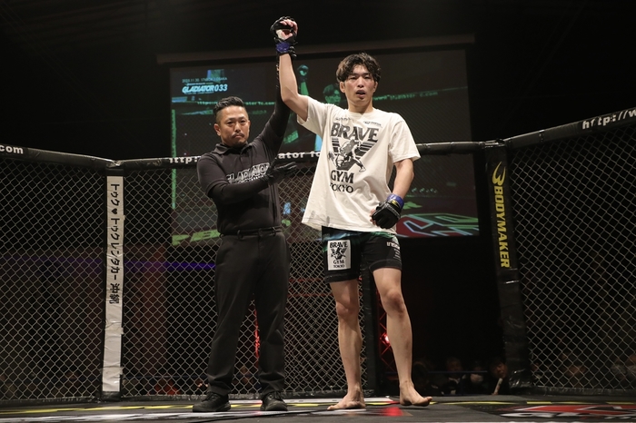 立つ望月は組んでくるKENZOにヒジ。崩してバックに。そこにアームロックを狙うKENZOだが、ともに同じ形に。回そうとするKENZOに望月がヒジを抜き上に。亀から腕を手繰るKENZOにサイドバックからパウンド。最後はボディロックから後方に倒してゴング。