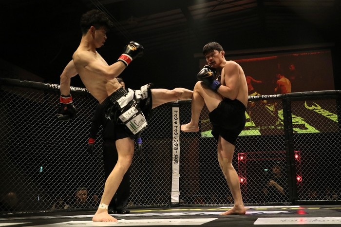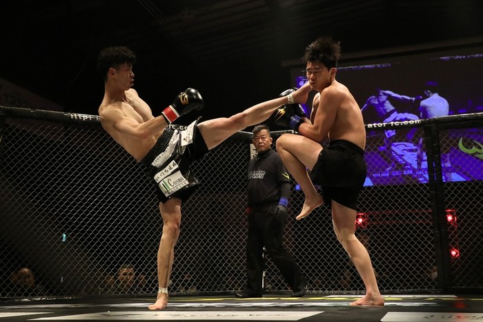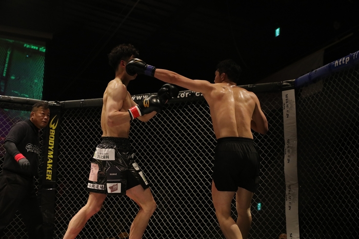 詰めるジョンフンは右フックを当てるが、そこにテンカオは荒尾。左右ミドルを打って、右ハイも。右ローにジョンフンも右を合わせてゴング。判定は3-0(30-27×2, 29-27)で荒尾が仕留めきれずも危なげなく勝利。
