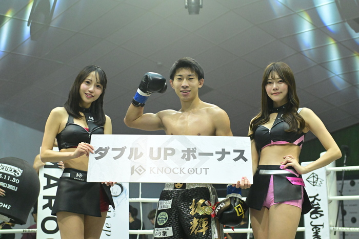 成尾はマイクを持つと「今回、自分はホーストカップ王者として他団体なんですけれどKNOCK OUTのメインイベントを締めさせてもらえることになって感謝しています。日本の60kg、この階級をもっと盛り上げたいと思っているし、自分の子の攻撃力ならKNOCK OUTのオープンフィンガーのREDルールとかUNLIMITEDルールでもっと面白い試合が出来ると思うので、今後注目しておいてください」とアピールした。