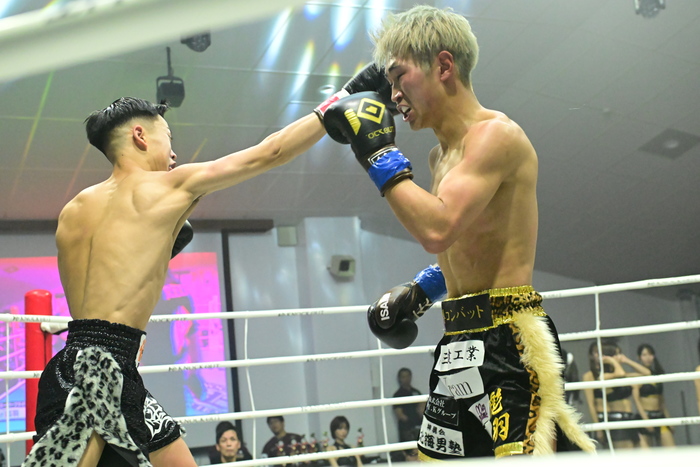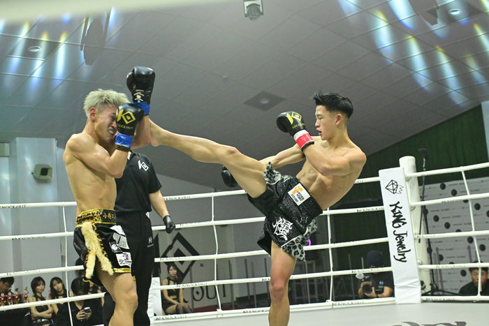 2R、彪羽がワンツー、ジャブから右カーフ。渡部は右ローを蹴っていき、ワンキャッチからのヒザも繰り出す。圧をかけるのは渡部だが、彪羽のジャブと右カーフが多く当たる。渡部がいきなり飛びヒザ蹴りを発射し、彪羽をヒヤリとさせる。ジャブから右フックを打つ彪羽に渡部も右を返す。軽快なフットワークからパンチを回転させ、蹴りにつなぐ彪羽。