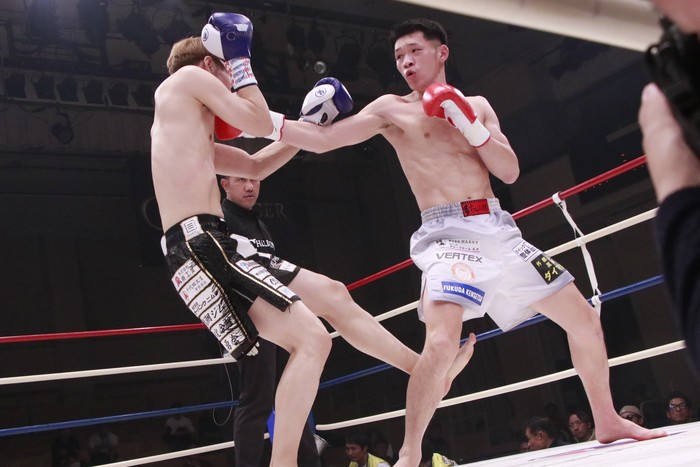 4R、右フックをヒットさせた吉田がジャブを多用して当てていく。さらに右ストレート、右カーフ。次第に吉田の攻撃が当たるようになり、終盤には右ストレートがクリーンヒットして切詰が腰を落とす。パンチをまとめた吉田がこのラウンドは完全に制した。