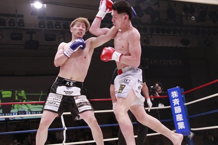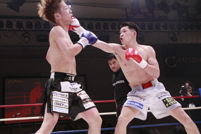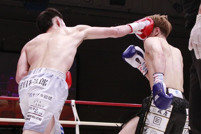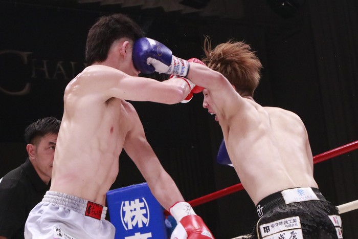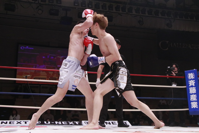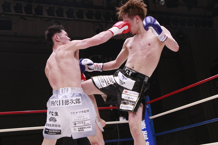 5R、吉田はジャブ、右クロスでヒットを奪い、切詰も逆転を狙ってワンツーを繰り出す。吉田は左ハイをかすめさせる。切詰に攻めさせ、カウンターとリターンをとっていく吉田。切詰も最後まで逆転を狙ってパンチを放って行った。