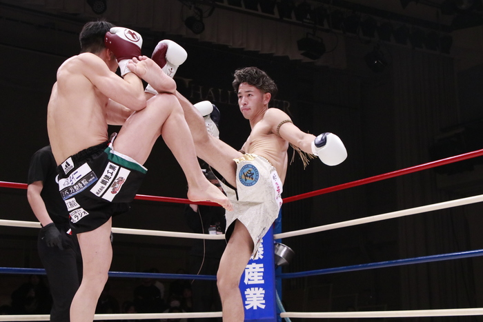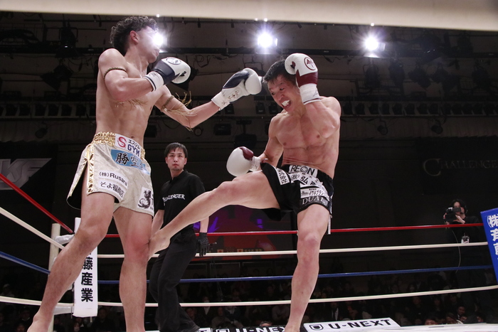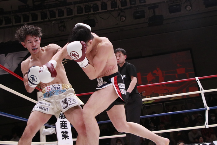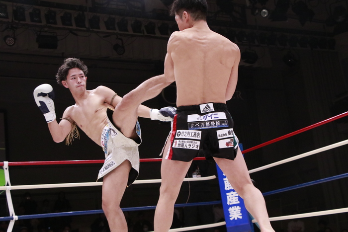 2025年1月にプロデビューし、126戦目(68勝21KO49敗8分)を迎えた健太がラストマッチを迎えた。その相手を務める佐々木は9勝(2KO)2敗2分の空手をベースに持つ選手。1R、佐々木はジャブと左右ミドルで距離を支配し、健太のパンチと蹴りは空振りが多い。佐々木は縦ヒジも放つ。