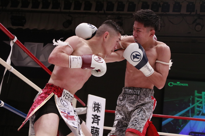 3Rはさらに両者アグレッシブな攻撃。竹田は右ローに左右ミドル、右ストレート。トマトは右フックで勝負をかける。勢いに乗る竹田が最後まで手数を減らすことなく攻め続け、判定3-0のフルマークで勝利した。