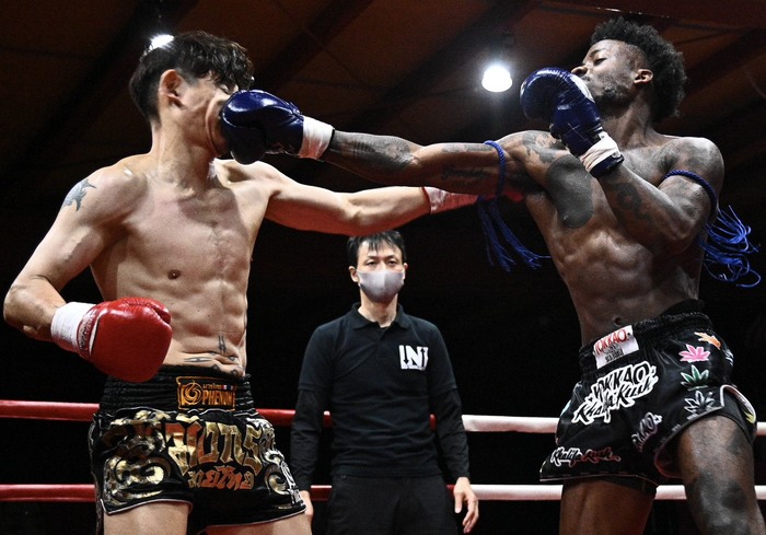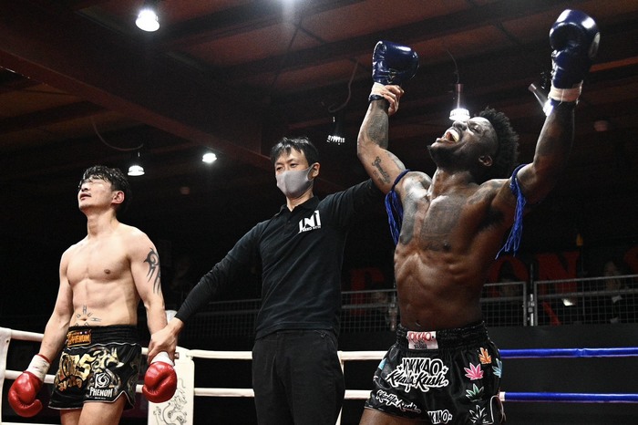 2戦2勝の42歳、NAOTAKAと、2戦1勝(1KO)1敗のリッキーは以前に対戦しており、その時はNAOTAKAが勝利を収めている。その後、リベンジに燃えてタイ・プーケットで修行してきたというリッキーは1RからNAOTAKAを強引に組み倒すなどラフファイトを仕掛ける。左ミドル主体のNAOTAKAだが、大振りのパンチを被弾してダウンしてしまう。