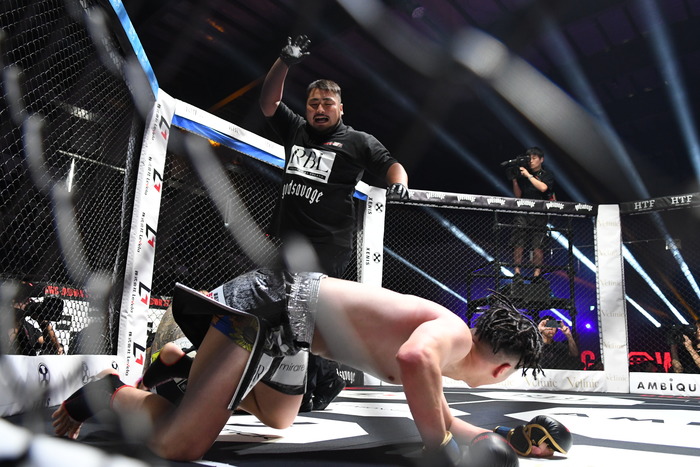 【写真】BreakingDown17で制止を聞かず殴り続けたシェンロンを投げ飛ばした勝本竜矢レフェリー