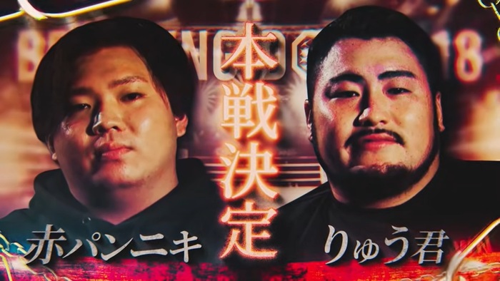 りゅう君は「見せしめで赤パンぶっ飛ばそうかなと思って」と、BreakingDownで5勝1無効試合と負け無し、前回9月には元プロボクシングWBF世界ヘビー級王者の肩書きを持つ元プロボクサーの高橋知哉から勝利を収めた赤パンニキを相手に指名。その場で対戦が決定した。