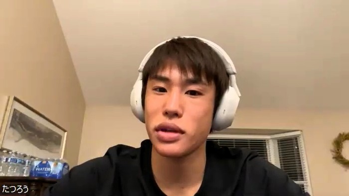 「デンバーの宿にみんなといますね(※画面を松根良太TBJ沖縄代表に向ける。岡田遼コーチ、兄・龍一、食事を作る母親の姿も)。今は練習が終わって、夜ゆっくりしてるところです」