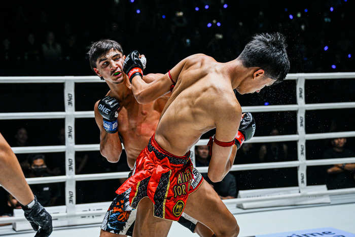アリーフが強い右ミドルをヒットさせ、右の打ち下しを当てるが、オンダッシュはその蹴り足を掴んで右ストレートで飛び込む! さらに左フックを強振するが、そこにアリーフはカウンターのテンカオ。オンダッシュの蹴り足キャッチ多用に、アリーフは足を捕まれるとすぐにストレートを打つ。