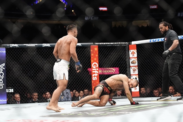 10月に25歳になるミャンマー出身のヴァンは、UFC5連勝中。21年のMMAデビューからわずか1年2カ月の8戦(7勝1敗)でUFCとの契約を決めると、23年6月から3連勝。24年7月にチャールズ・ジョンソンと対戦し、3R 打ち合いのなかで、喧嘩四つから怒涛の前進を見せるジョンソンに左ジャブを突いたところに右フックをかぶせられて下がったところに長い右アッパーを被弾。UFC4戦目で初黒星のTKO負けを喫した。