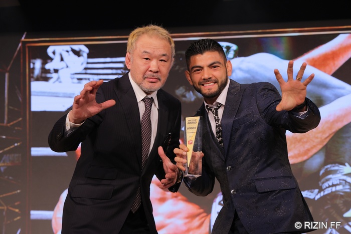 サトシは「もちろん嬉しい。私がRIZINに入った時は、ここまで出来るイメージは本当にありませんでした。だから今日、桜庭先生からトロフィーをいただけてもう1個の夢が叶ったようでとても良かったです」と受賞の喜びを言葉に。