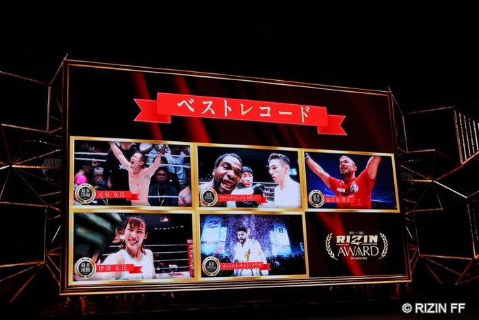 中盤ではRIZIN 10年間のベストレコード をまとめたVTRが上映され、最多出場選手(23試合)は元谷友貴、最短フィニッシュはチャールズ・ベネットvs.木村ミノルでベネットが7秒でKO勝ち、最多の判定勝利を収めた選手は扇久保博正(11試合)、最多連勝は伊澤星花(11連勝)、そして最も多くフィニッシュを決めたのはホベルト・サトシ・ソウザ(12フィニッシュで決定率は92%)といった記録が発表された。