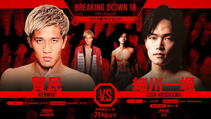 2025年12月14日(日)さいたまスーパーアリーナ コミュティアリーナ『BreakingDown 18』の全対戦カードが、8日(月)夜に朝倉未来YouTubeチャンネルにて発表された。