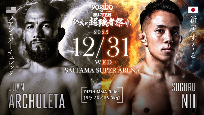 2025年12月31日(水)さいたまスーパーアリーナで開催される『Yogibo presents RIZIN師走の超強者祭り』に出場が決定していたフアン・アーチュレッタ(米国)が、「入出国に関するトラブル」により来日が不可能となったため、同大会を欠場することが12日、RIZINから発表された。