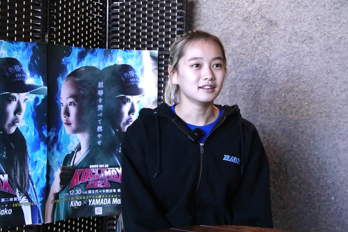 2025年12月30日(火)東京・国立代々木競技場第二体育館『KNOCK OUT.60 ~K.O CLIMAX 2025~』(U-NEXT配信)にて、KNOCK OUT-BLACK女子アトム級タイトルマッチ3分3R延長1Rで、山田真子(GROOVY)の挑戦を受けての初防衛戦に臨む王者Kiho(KNOCK OUT GYM 調布)が12日(金)都内にて公開練習を行った。