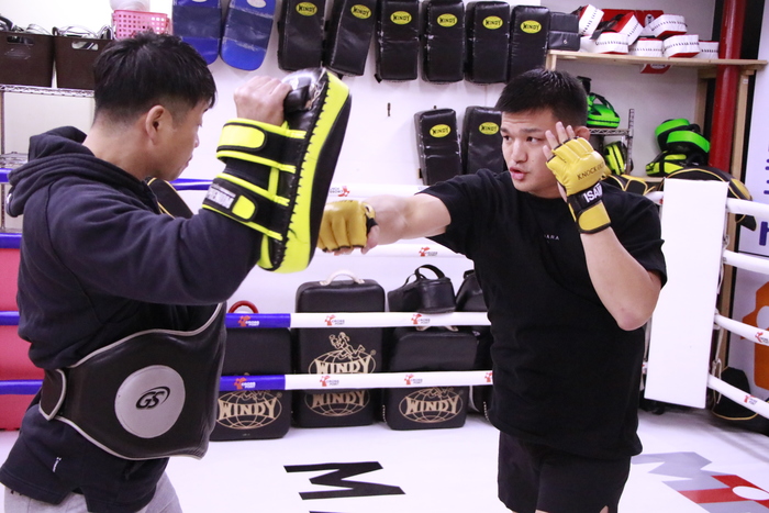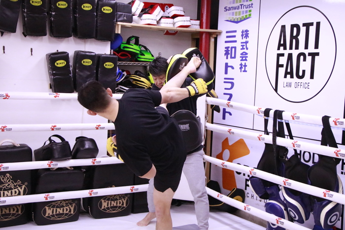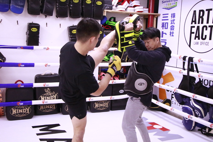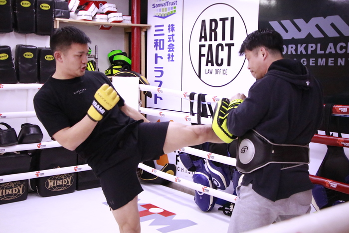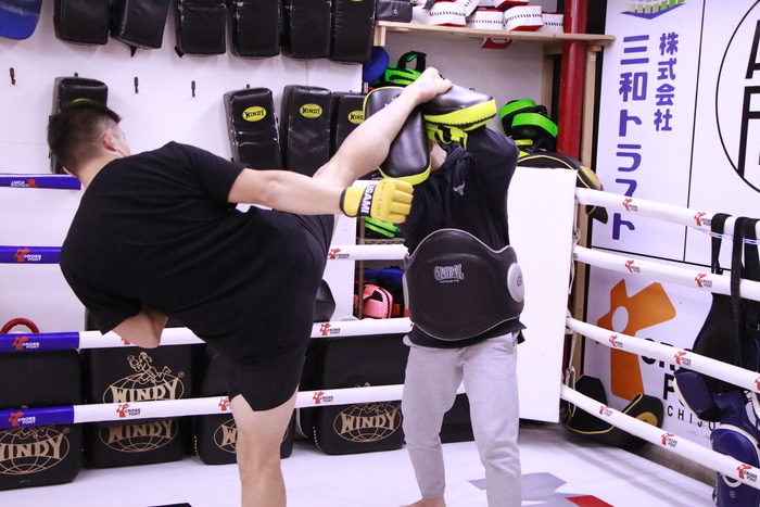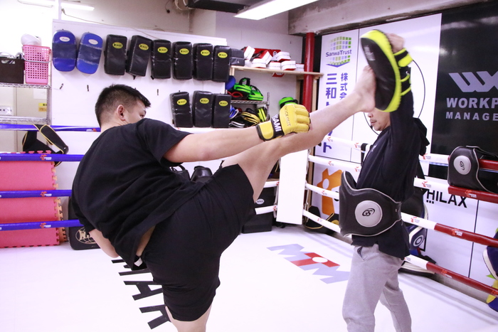 迫力ある蹴りでジム内に轟音を響かせた宮原