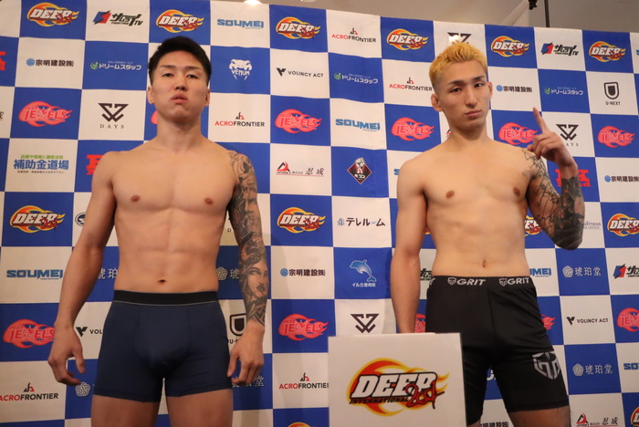 ポストするYoutube 1234567891011121314 ▼DEEP フライ級 5分2R 松岡疾人(NEX SPORTS)57.10kg松井優磨(KATANA GYM)57.10kg 松井「今回、戦う松岡選手、何度か試合見ていて、戦えたらすごい楽しみだなと思ってたんで、明日すごい戦えるのを楽しみにしてます。あと、めっちゃ貧乏なんで、スポンサーさん募集してるんで、応援よろしくお願いします」松岡「すみません、ちょっと計量遅れちゃって。まずはこのような舞台に呼んでいただきありがとうございます。負けて始まった今年ですが、一年の主体性しっかりですねええ、明日バッチリかって、ええ、今年終わります」 NEXT次のページへ1234567891011121314 ポストするYoutube