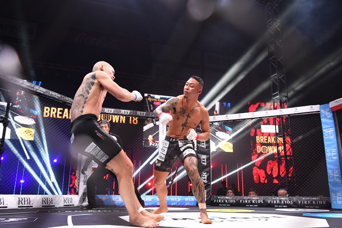メカ君はマイクを持つと「今年最後の大喧嘩どうでした? エクスタシー感じられたんですね。自分、対戦要求している人がいるんですけど、やりましょう白川さん。喧嘩自慢がどこまで行けるかがBreakingDownでしょう。ぜひやらせてください。どこがダークなんだよ、エンジェルだろ。やろうよ。それとsaki、お前先にやろうよ。ぶっ飛ばしてやるよ」と、白川ダーク陸斗とsakiに対戦要求。