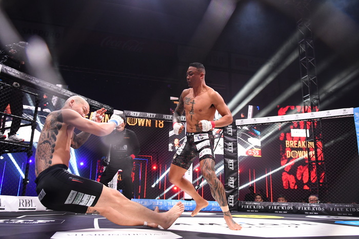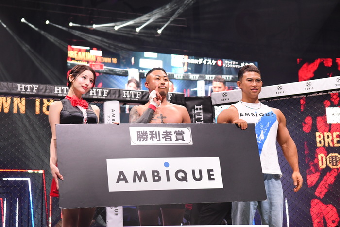 立ち上がったダイスケにメカ君が再び左右フックで突進。右フックでダイスケが倒れ、メカ君がパウンドの追撃でダイスケを防戦一方にさせレフェリーストップ。