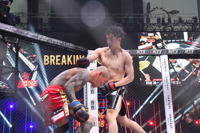 BDデビューから無傷の3連勝ドラゴンと、元プロキックボクサーの村田が対戦。